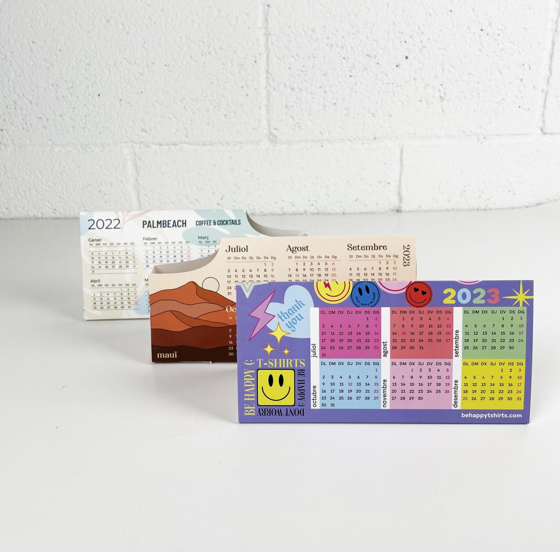 Els calendaris són una eina de comunicació i màrqueting molt útil. Un regal promocional personalitzat amb la identitat corporativa que està present a la vista dels clients cada dia durant tot l’any.
